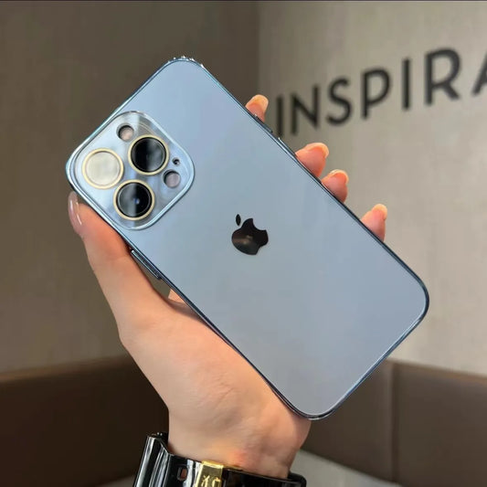 Electroplated Matte Acrylic Tempered Glass iPhone Protective Case with full camera protection